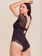 בגד גוף מחטב בשילוב תחרה בצבע שחור
