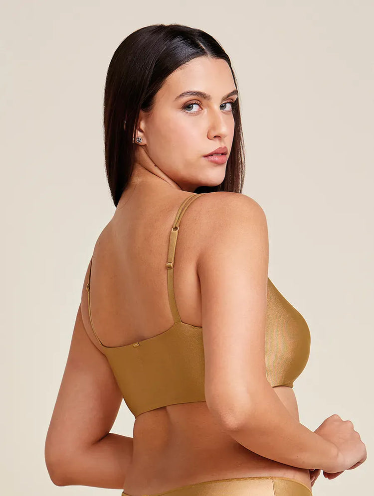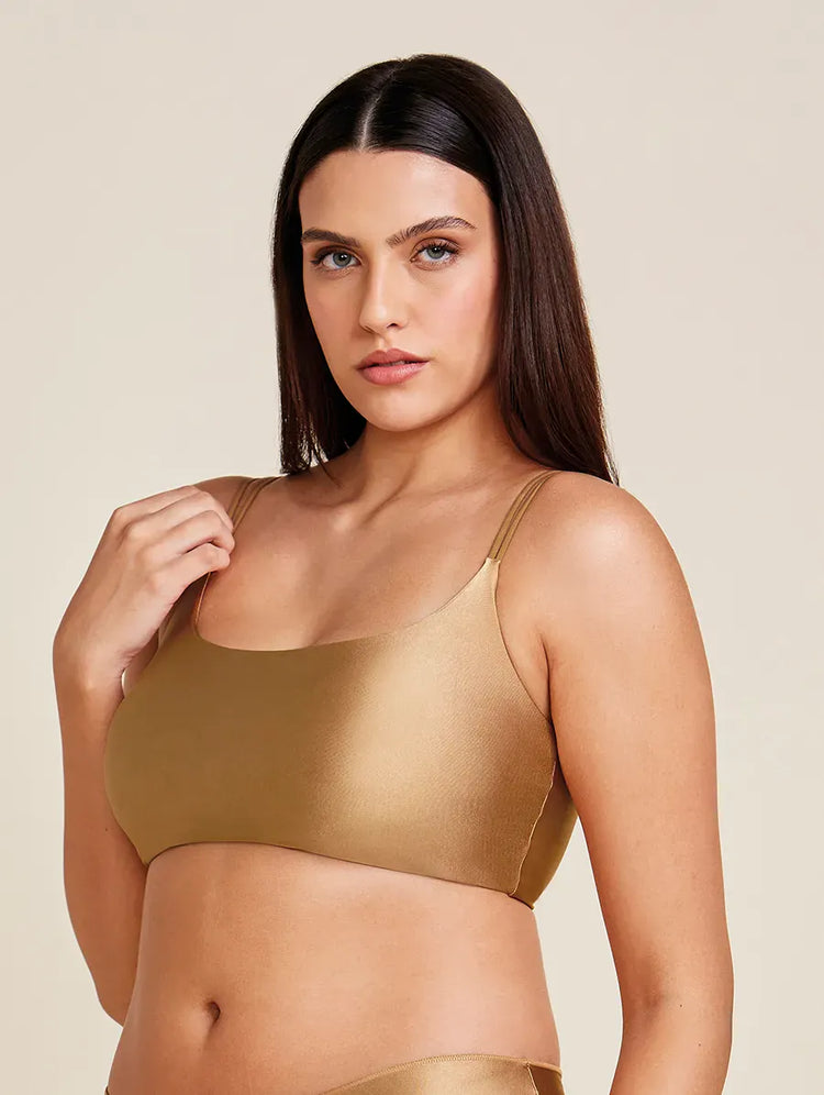טופ מיקרופייבר מבריק ללא ברזלים עם ריפוד נשלף בצבע זהב-אוקר