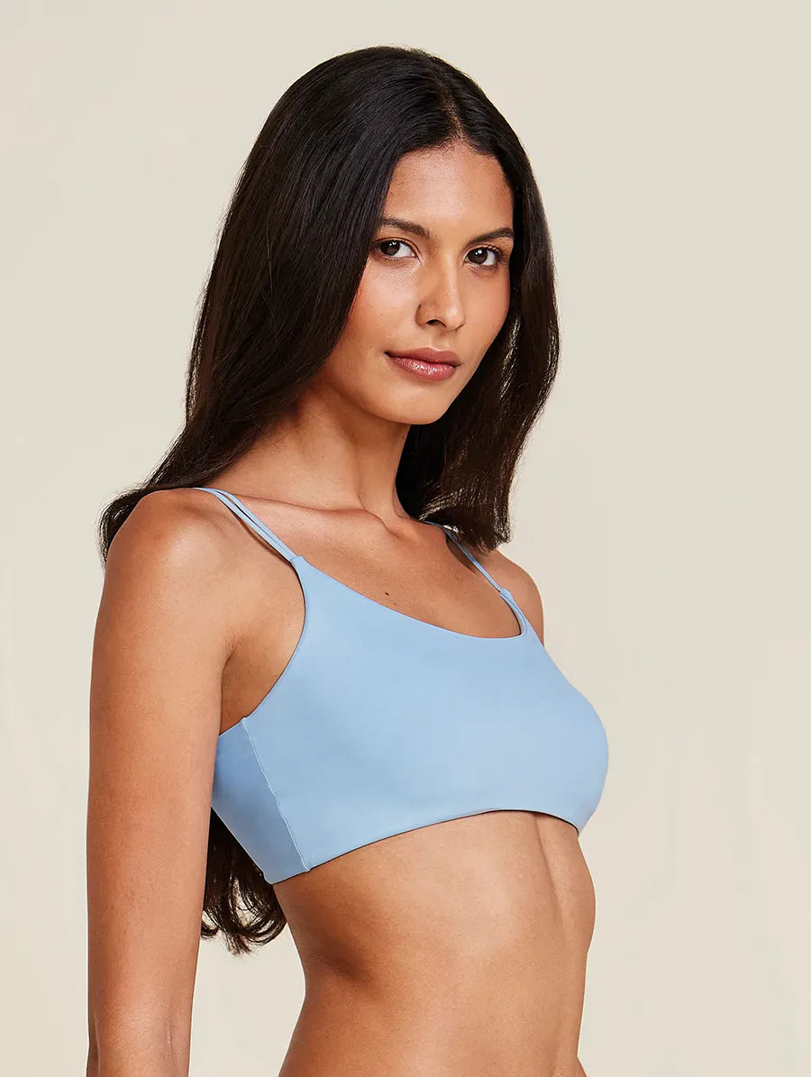 טופ מיקרופייבר ללא ברזלים עם ריפוד נשלף בצבע תכלת