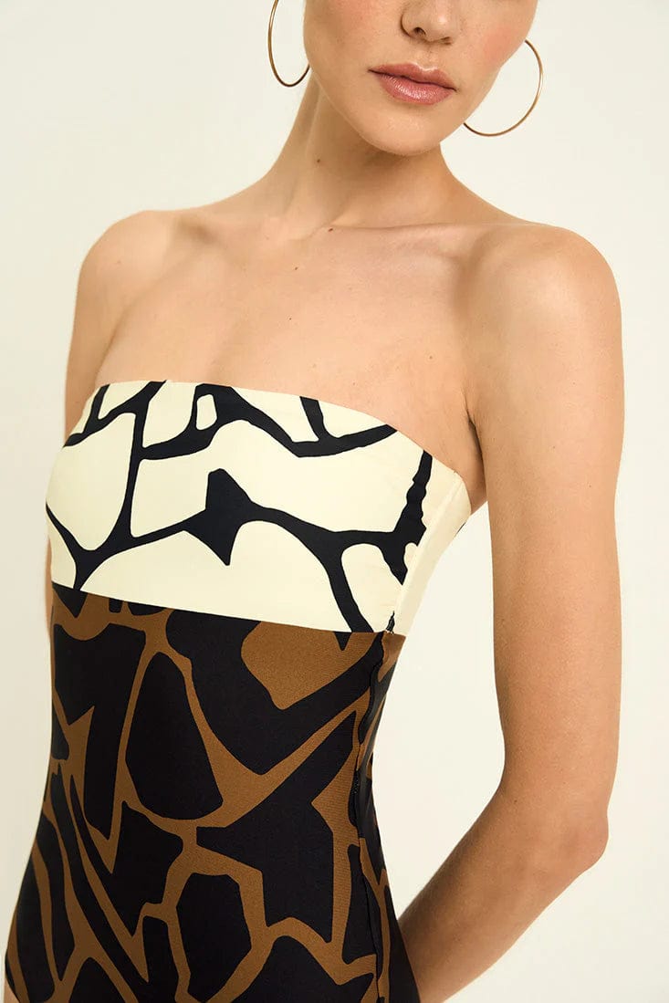בגד ים סטרפלס שלם בהדפס ג'ירפה