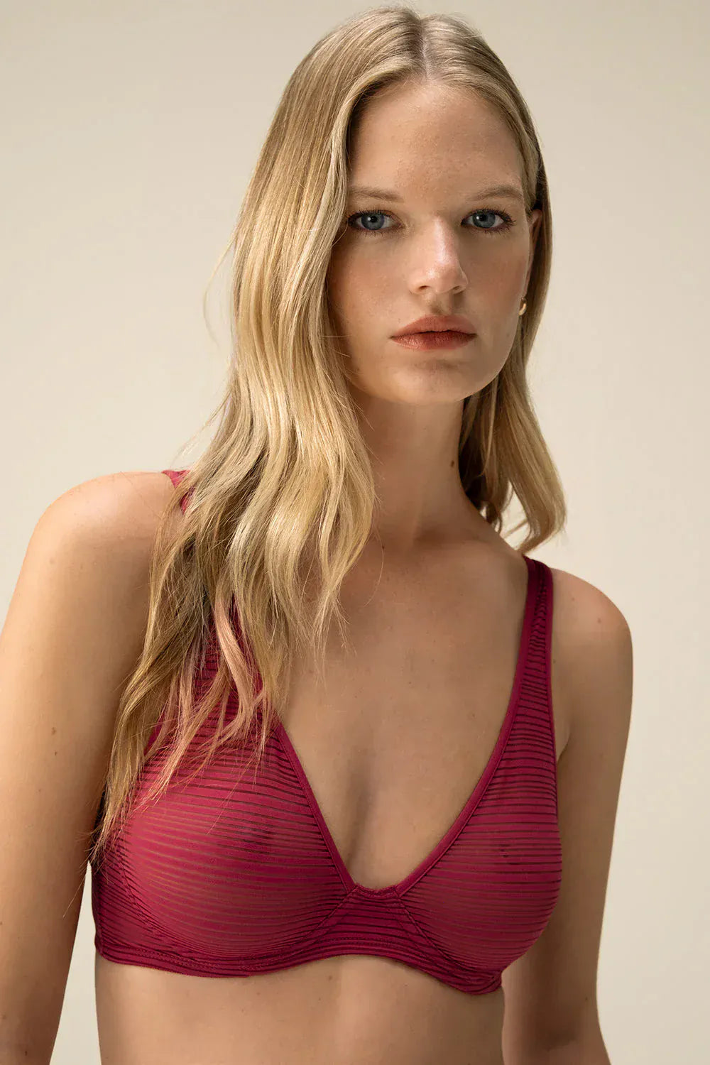 חזיית טי שירט ללא ריפוד בצבע אדום-דובדבן