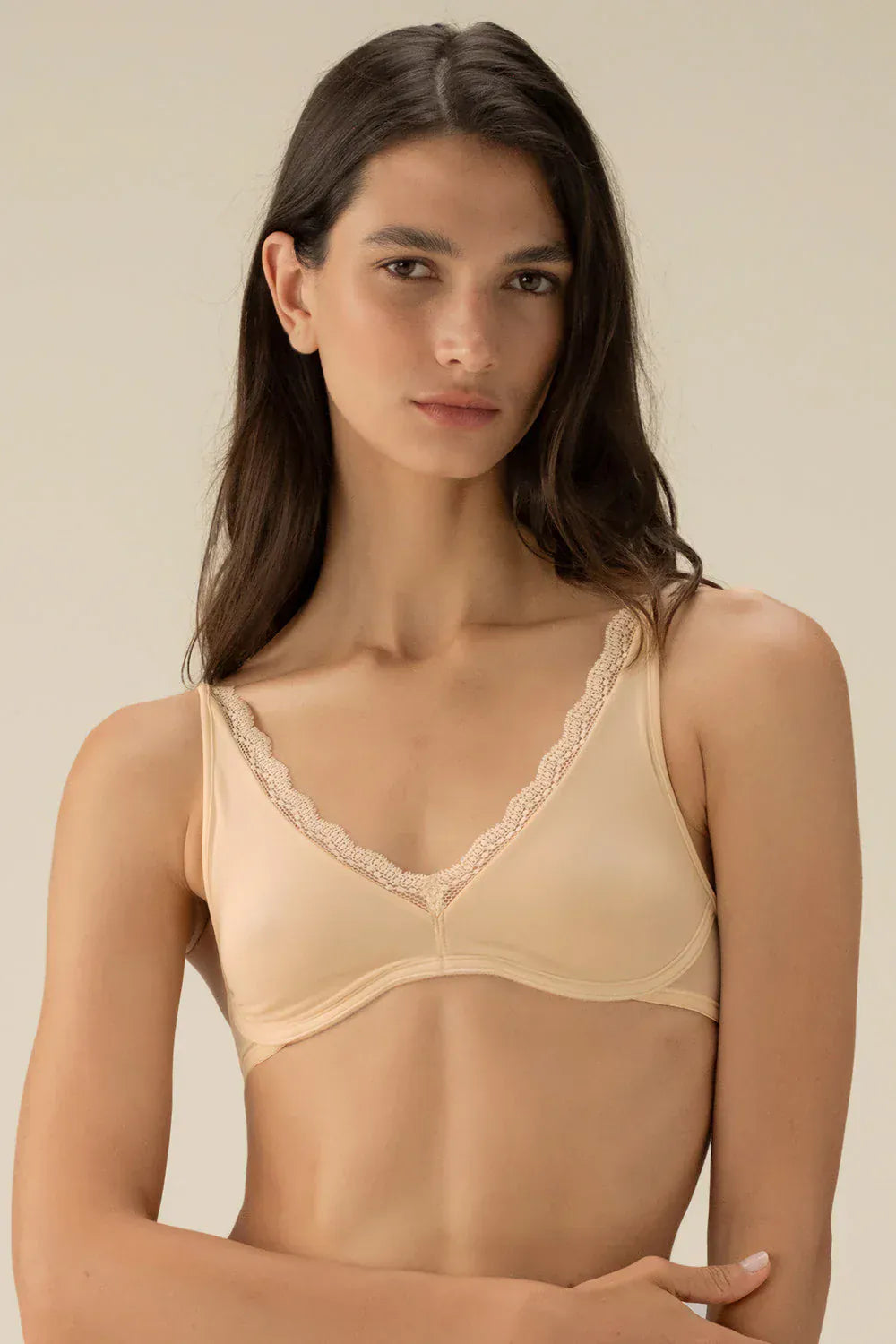 חזיית טי שירט ללא ריפוד בצבע קרם